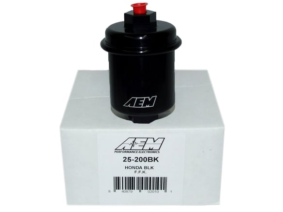 High Volume Fuel Filter, Black Anodized, Fits Acura & Honda, Inlet: 14mm X 1.5, Outlet: 12mm X 1.25