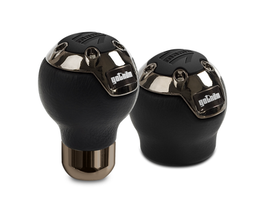Momo Gotham Shift Knob - Black Leather, Dark Chrome Insert