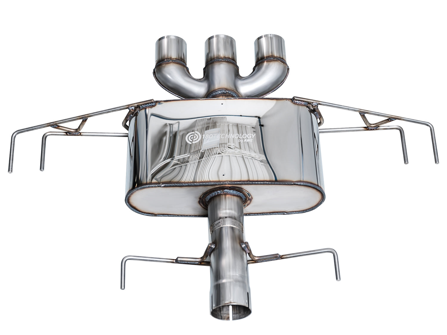 AWE exhausts are not designed to mate with other aftermarket frontpipes.