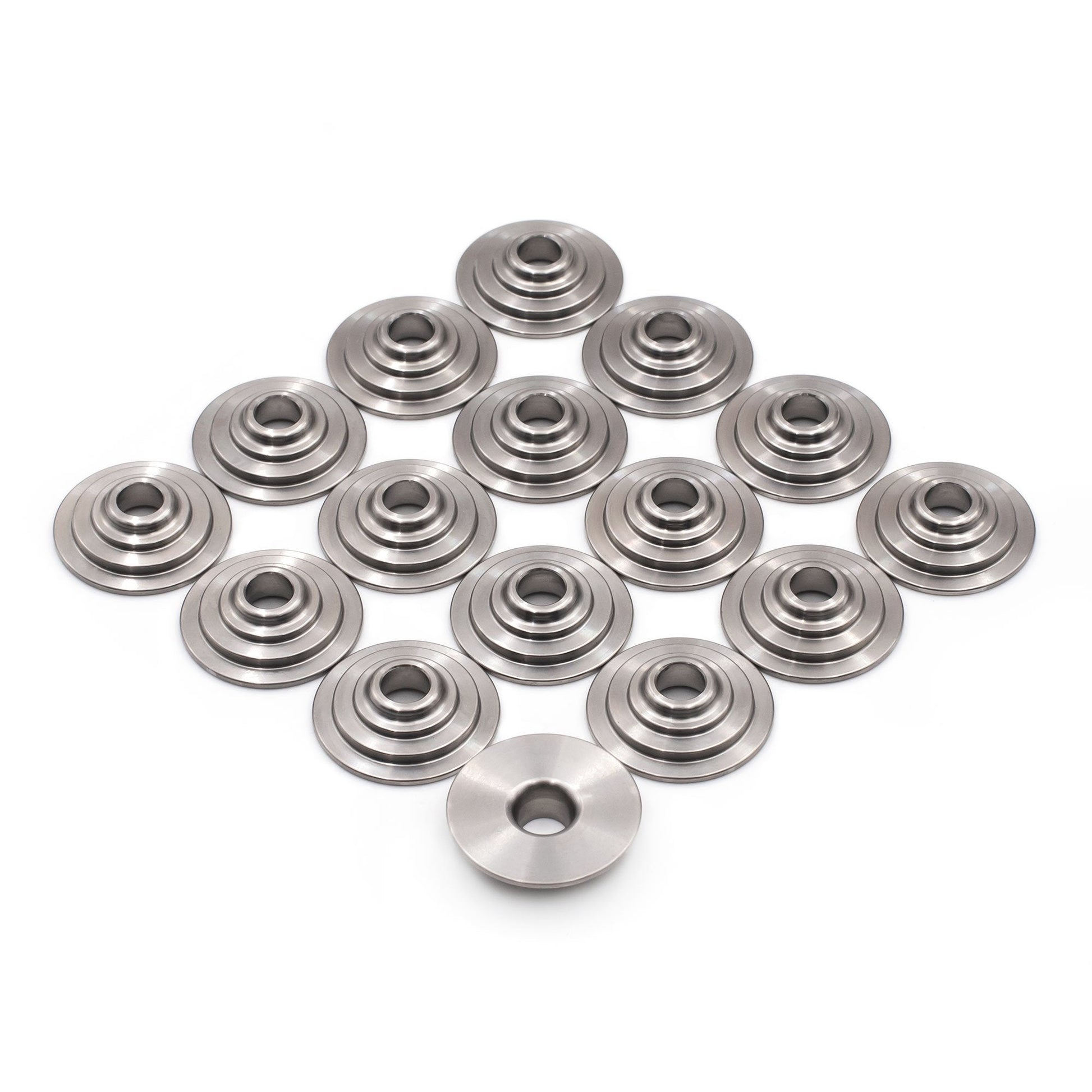 These Ti retainers are machined to exact specifications and help reduce the overall weight of the valvetrain area. As a direct result of the reduced weight, RPM's are increased.